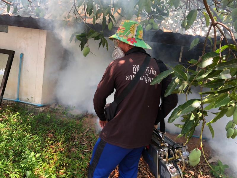 งานป้องกันและบรรเทาสาธารณภัยดำเนินการพ่นหมอกควันโรงเรียนบ้านนาชุมแสง