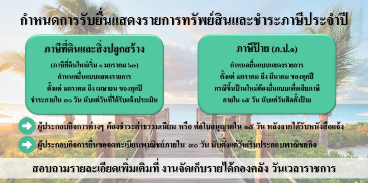 ประชาสัมพันธ์ กำหนดการรับยื่นแสดงรายการทรัพย์สินและชำระภาษีประจำปี