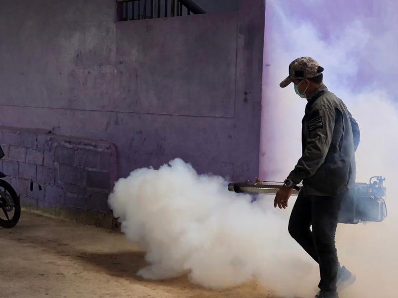 งานป้องกันและบรรเทาสาธารณภัยดำเนินการพ่นหมอกควันโรงเรียนบ้านนาชุมแสง